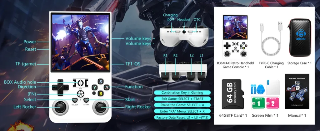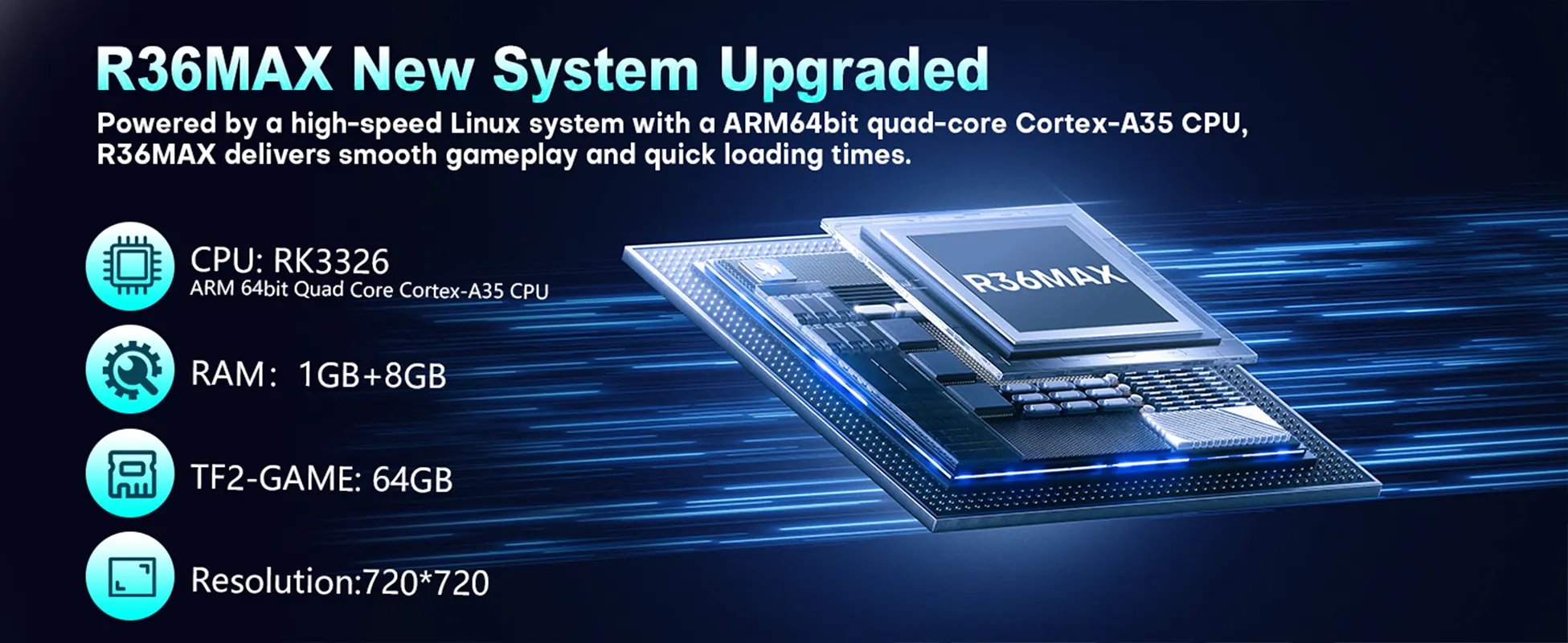 R36MAX Upgraded Retro Gaming Console delivers the ultimate nostalgic gaming experience for retro fans. Powered by the professional RK3326 chipset, this console runs on Linux OS and supports 23 emulators, with 18,000+ built-in games ready to play out of the box. The 4.0-inch IPS display provides sharp visuals and wide viewing angles. With a 64GB high-speed TF card, the system operates smoothly. Its transparent black casing offers a sleek, techy look. Equipped with a 4000mAh battery, it ensures long-lasting gameplay on the go.